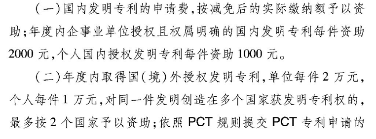 (三)PCT專利申請被受理并繳納費用的,單位申請資助1萬元/件,個人申請資助4000元/件。