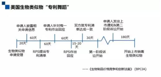 既然美國的生物類似物不適用于專利鏈接制度,那生物類似物上市遵循怎樣的流程呢?美國有一套獨特的制度叫“專利舞蹈”(Patent Dance)。這項制度是通過2009年《生物制品價格競爭和創(chuàng)新法案》所建立的一套制度,2010年生效。這項制度非常有意思,它要求在生物類似物上市申請受理之后,上市申請人和參比制劑企業(yè) (PRS)通過一系列的程序,互相交換信息,交換專利清單,對所涉及的專利進行協(xié)商,以就專利清單達成一致。